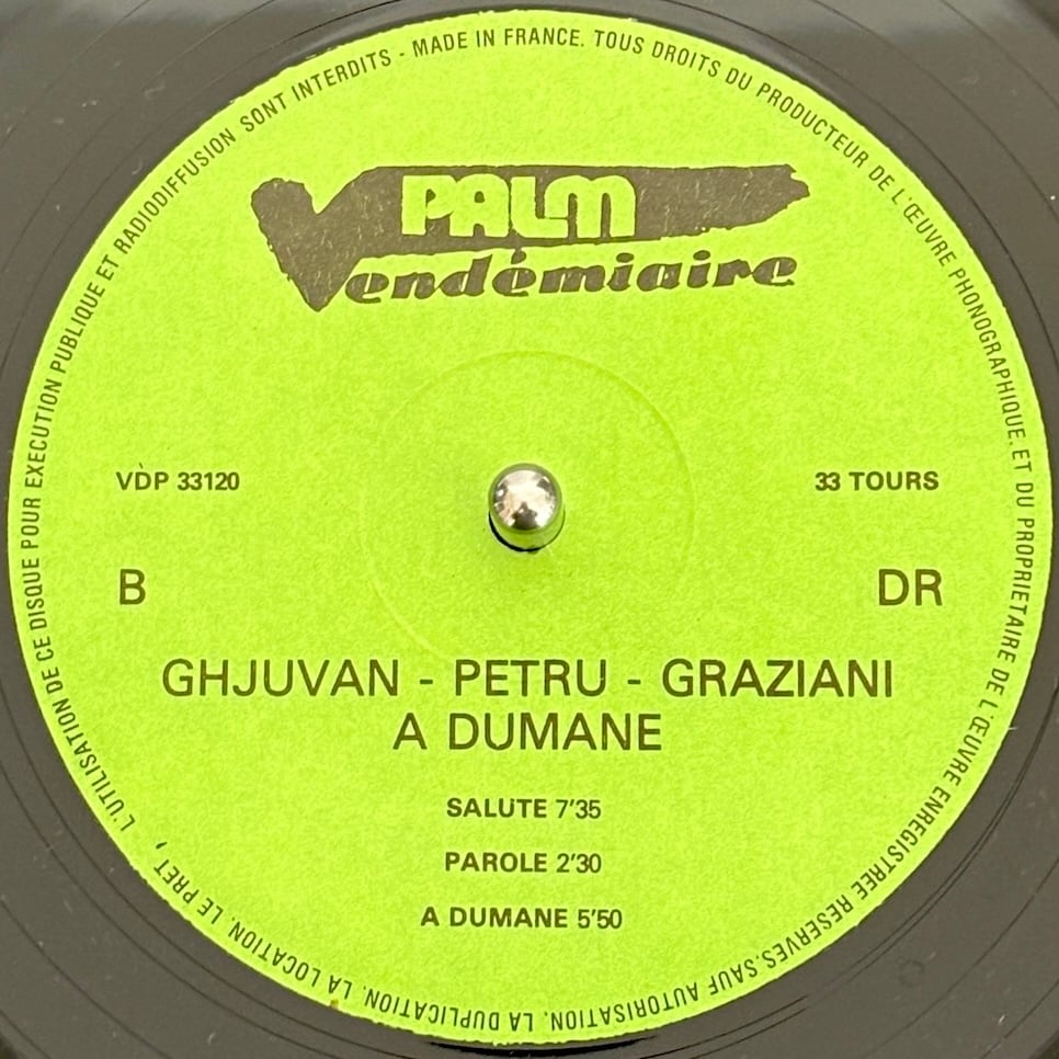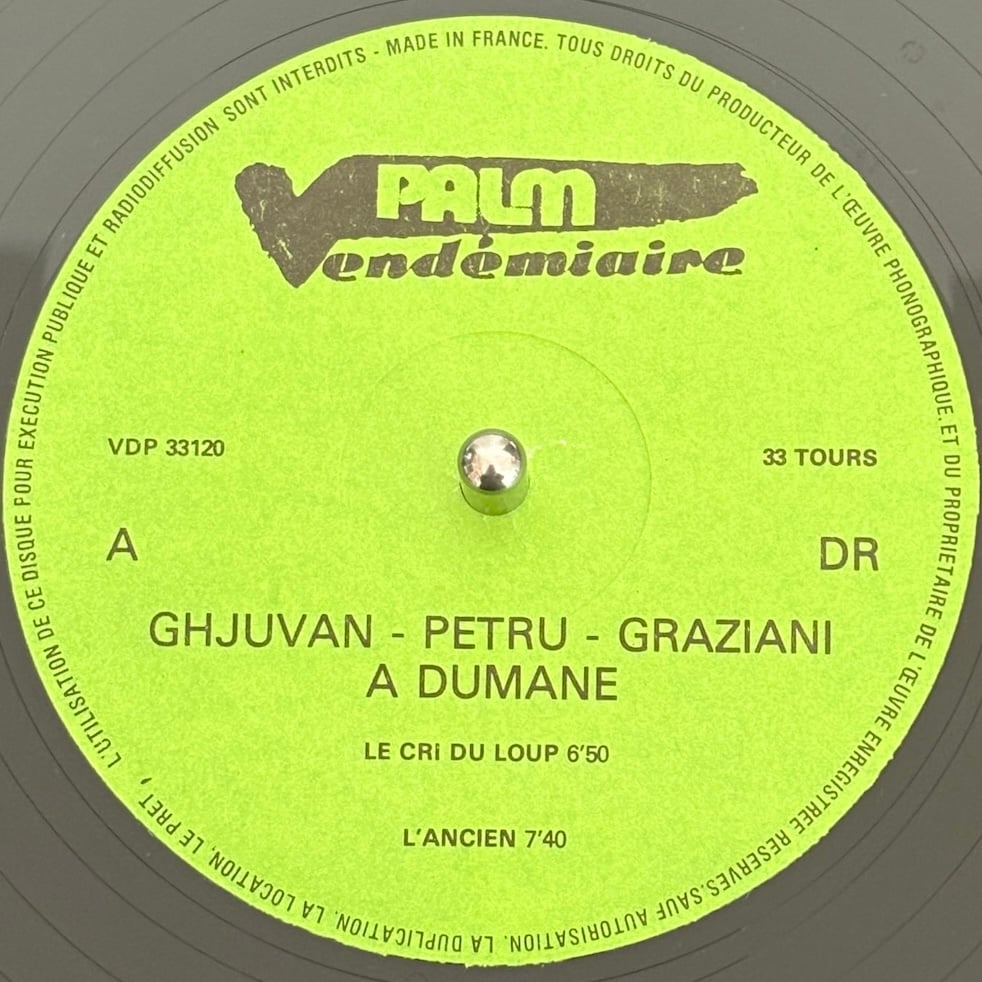 Elusive and magnetic, A Dumane remains one of those rare records that seem to come from another dimension — part protest document, part electronic experiment, and entirely unique. Unlike Corsica Ribella (recorded later with Rinatu Coti under his Corsican name Ghjuvan Petru Graziani), which was eventually reissued, A Dumane has never been re-released, making original copies very rare but not impossible to find today. Still impossible to categorize — and as fascinating as ever.