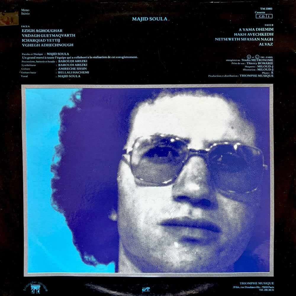 Extremely hard to find 1981 debut album by Kabyle Algerian artist Madjid Messaili, better known as Madjid Soula. A true collector’s gem blending Amazigh/Kabyle roots with early 80s modern production, moving effortlessly from folk songwriting to groovy pop, funk and disco flavors.