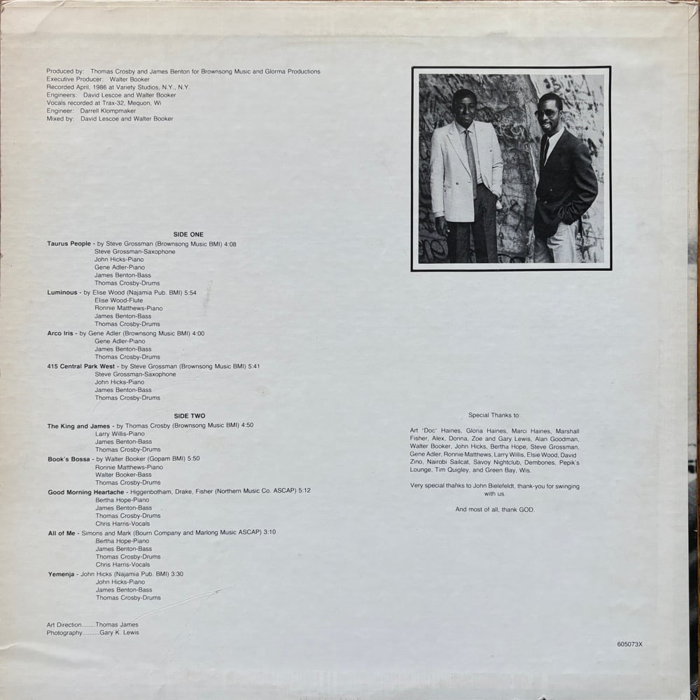 Rare private-press modern jazz gem, self-produced by drummer Thomas Crosby and bassist James Benton, recorded in Wisconsin in 1986 and very likely pressed in extremely small quantities.